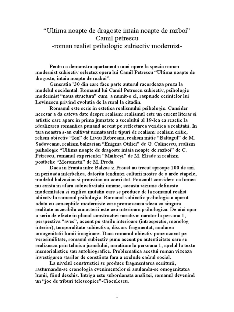Ultima noapte de dragoste, ntaia noapte de rzboi de camil petrescu.